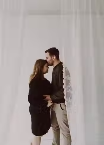 Margot en Sammy kwamen langs bij hun eerste zwangerschap in de studio in Voorde. Steeds voorzie ik verschillende achtergronden en andere plekjes waar ik jullie laat zijn wie jullie zijn en stuur ik bij waar nodig. Het binnenvallend licht en de gordijnen geven een leuke touch. Je hebt steeds de mogelijkheid om verschillende tenues aan te trekken maar dat is zeker niet verplicht. Het kan wel een leuke variatie geven aan de beelden.